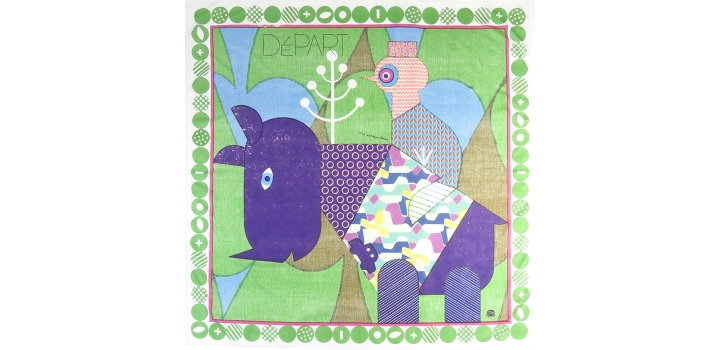 表と裏のイラストがぐるりとつながる動物モチーフのミニバッグやお揃いの卵形ポーチ、夜の動物園をイメージした刺繍ブローチなど、カラフルで楽しい世界をお届けします。