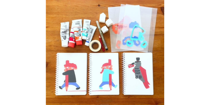 ステンシルの技法で、ノートの表紙絵を作るワークショップです。
