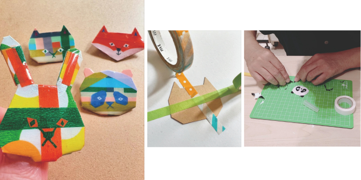 動物型の台紙にマスキングテープを貼り、UVレジンでコーティングして仕上げます。