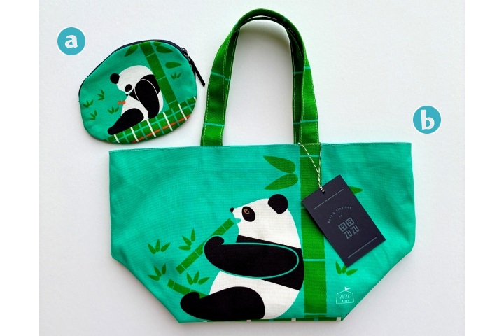 また、アートな傘生地を使ったグッズも展開。高密度繊維のきれいなプリントを活かして、作品の世界を広げました。