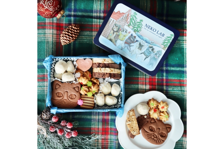 愛らしい猫のクッキーや、雪のように優しいスノーボールなど9種類の味わいをかわいらしい缶と共にお楽しみください。