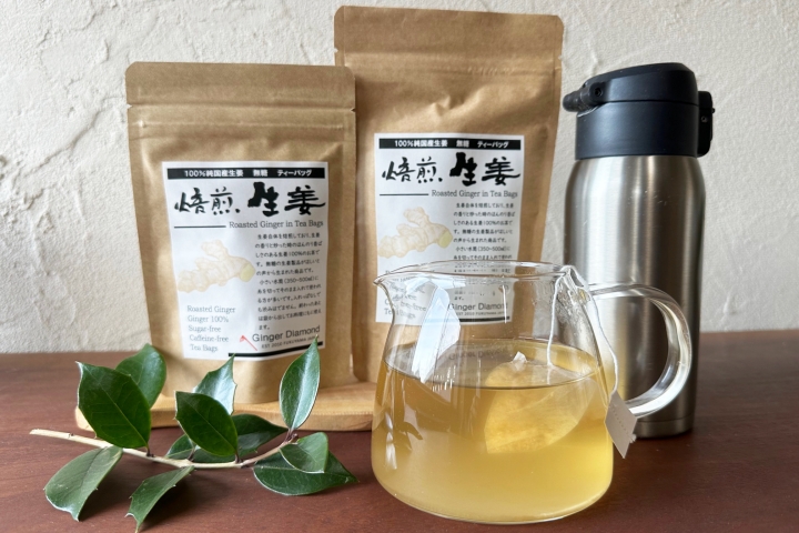焙煎した生姜と飛騨高山のほうじ茶をブレンドした、ジンジャーほうじ茶。