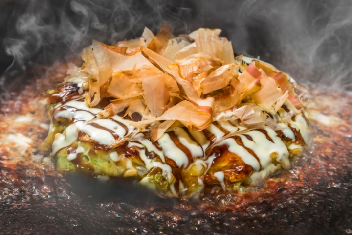 お豆腐と魚のすり身で作ったソフトな食感のお好み焼き。