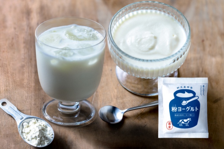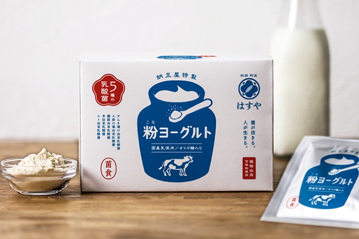 粉なっとうづくりの経験を生かして作った5種類の乳酸菌を元につくった"粉ヨーグルト"。