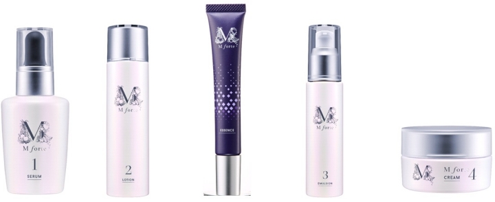 先行美容液、保湿化粧水、薬用シワ改善美白クリームエッセンス、美容乳液、保湿クリームです。