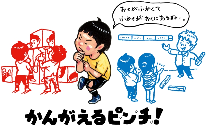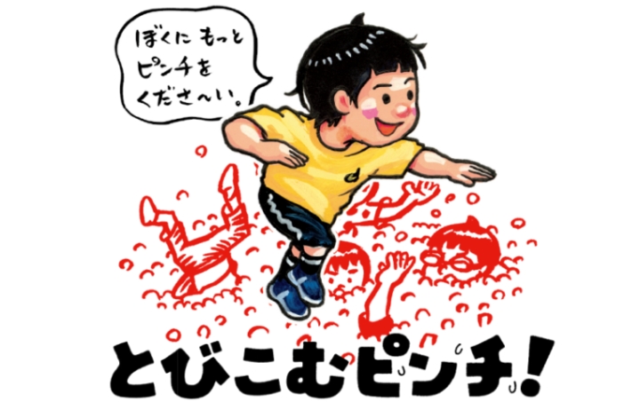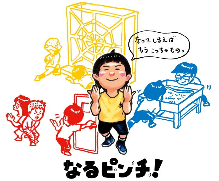 「だれが・どこで・なにを・どうした」の4種類の言葉を組み合わせて生まれる偶然のピンチを笑い飛ばす「大ピンチバー」。男の子の全身を襲うピンチの組み合わせを楽しむ「大ピンチブロック」。参加して考え、来場者が一緒に楽しめるピンチです。