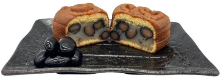 しっとりとした生地のカステラに、白あんと国産丹波黒大豆甘煮を包んだ、優しい味わいのお饅頭です。