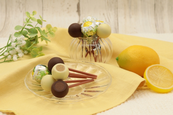 自家製ナッツペーストをレモンチョコでコーティングした、季節限定フレーバーのフルール ドゥ ボンボンが入ったサービスパックです。