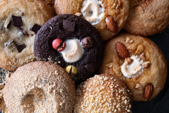 定番のプレーンをはじめ、チョコチップ、チーズ、ほうじ茶とホワイトチョコなど数種類の味わいをご用意しています。