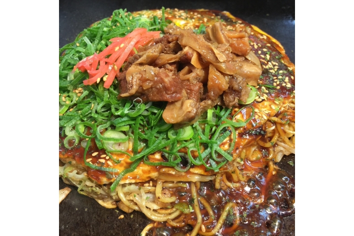 広島のソウルフードお好み焼きに相性抜群のトロトロ牛すじをトッピングした一品です。