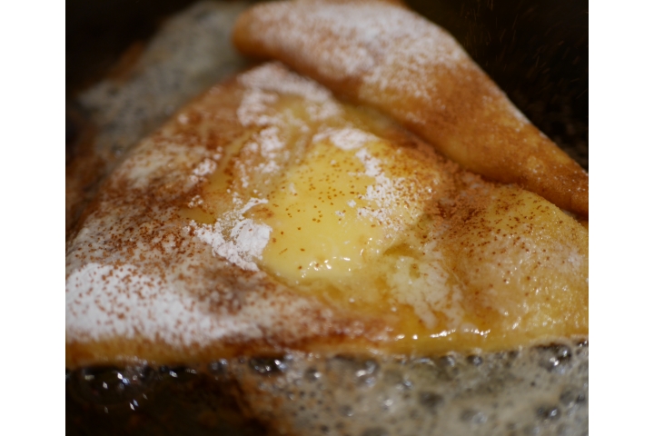 鉄板の上でバターを染み込ませながら焼きあげる、サクッ! ジュワッ! 食感の焼き立てバタークレープ。