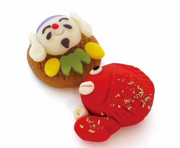 大福は大きな福という意味を持つ、大変ご利益のある和菓子。ぬれでに粟という意味にちなんだ粟大福、西宮神社の境内の森をイメージしたよもぎ大福の2種類が入っています。とおかしの共通パッケージの中のうち懸け紙には西宮神社本殿の三連春日造とエビスさんが描かれ、商売繁盛の笹のオーナメント、「えびす」という文字が隠された鯛のシールがポイントです!阪急でとおかしやお店について知ってくださったお客様がお店にも足を運んでくださることがあり、大変うれしく思います。美味しい和菓子をたくさんご用意しているので、今回をきっかけにお店を知って下さったお客様も是非ご来店ください!