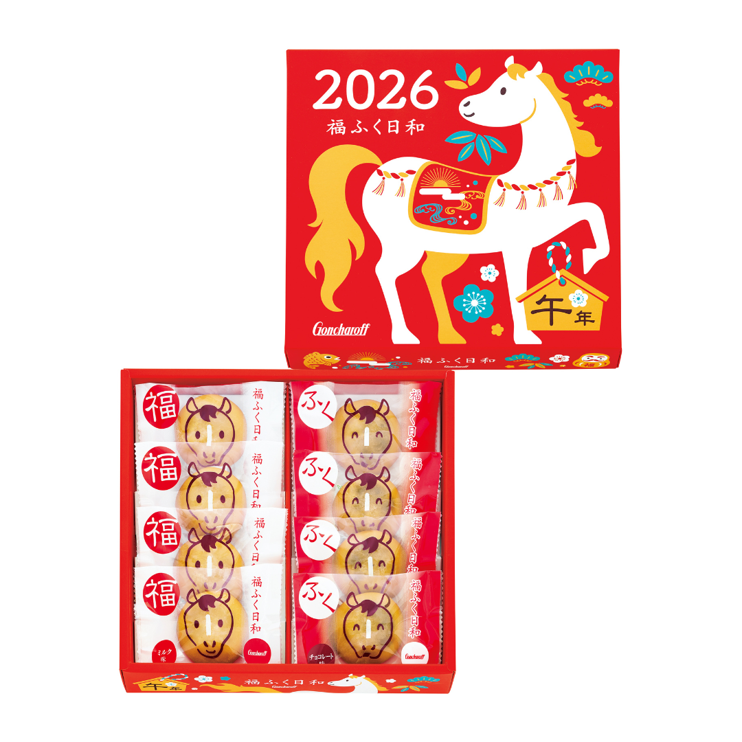 お正月らしい絵柄のボックスにコロコロワッフルとプティワッフルを詰合せました。