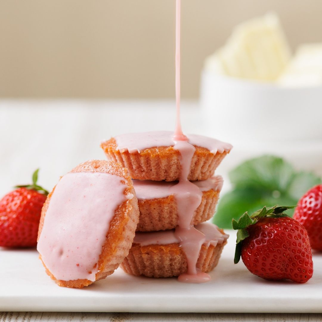 甘酸っぱいあまおう苺を贅沢に生地に使用し、しっとりと焼き上げました。ふわっと広がる甘酸っぱい香り、やさしい甘さが口いっぱいに広がります。