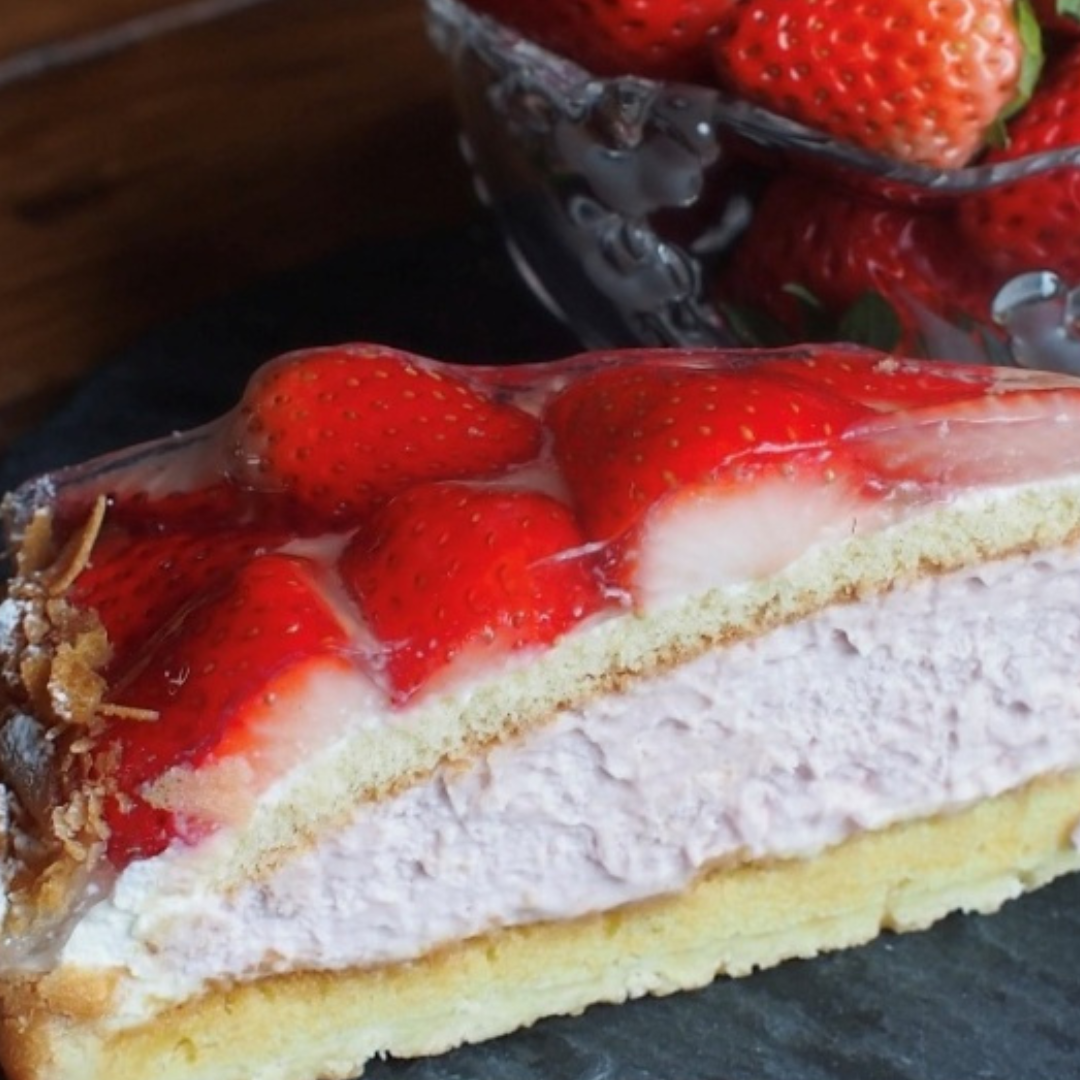 甘くてフレッシュな苺と口どけの良いホワイトチョコとラズベリームースを組み合わせたタルトです。