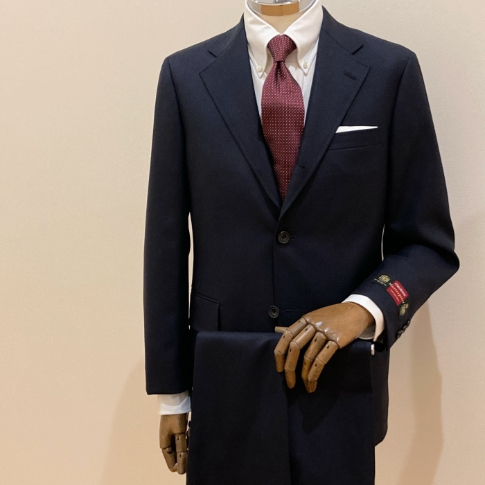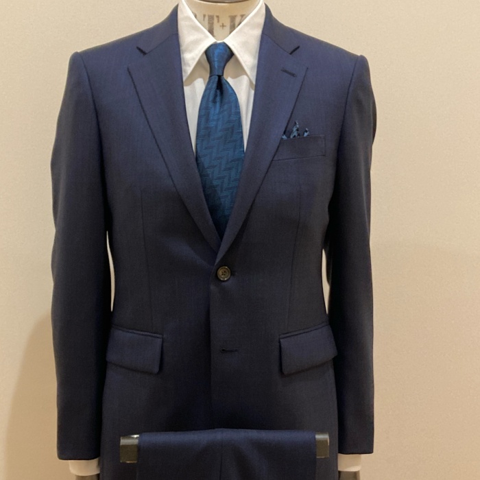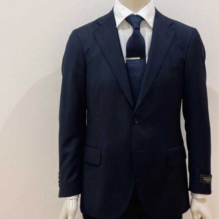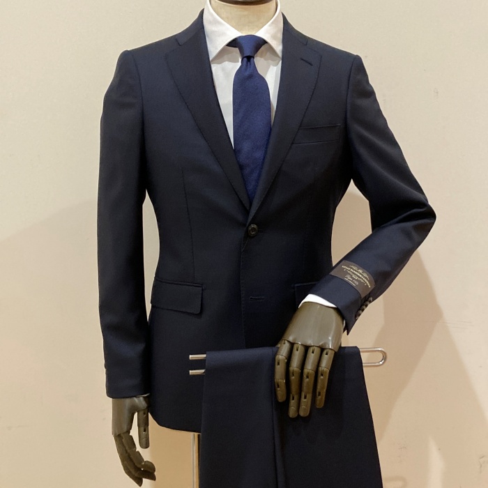 イタリアのカノニコ社のスーパー110の生地を使用したスーツは、軽くて柔らかい発色の良さが特徴です。