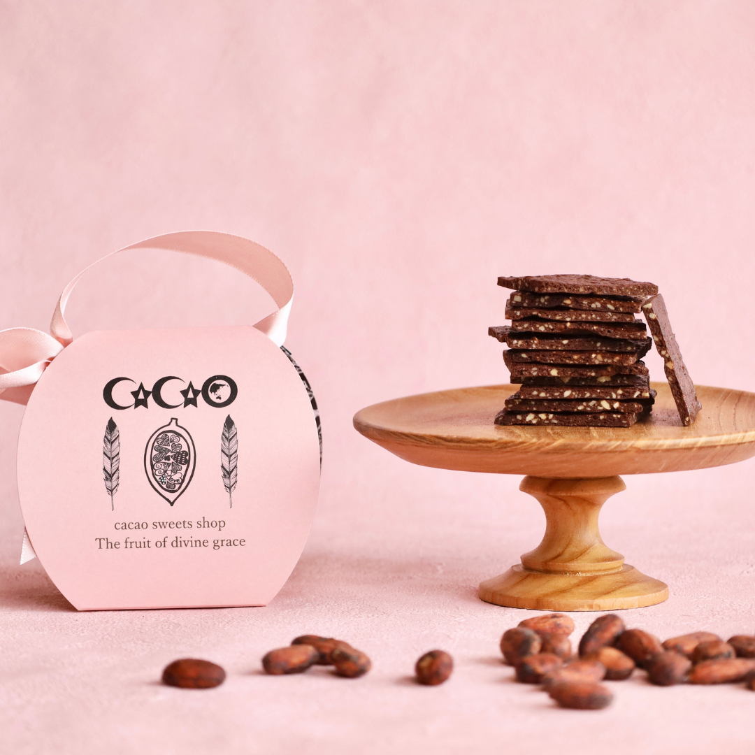 濃厚なカカオ香るグルテンフリークッキー。生地にはたっぷりのカカオパウダーと米粉を使用。刻んだカシューナッツも加えました。パリッとした食感とカカオの香りをどうぞご堪能ください。