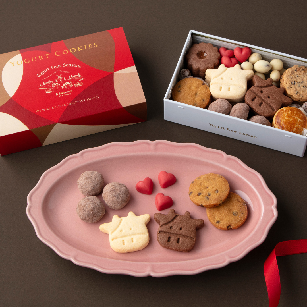 ココア味のうしサブレやハートのいちごチョコなどを入れた、期間限定の詰合せです。