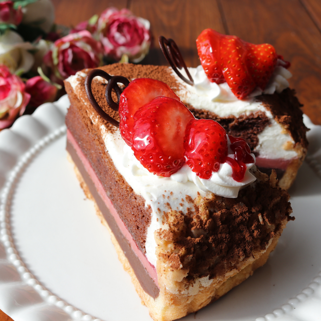 ふんわりとしたチョコスフレとなめらかな生チョコを合わせたタルトです。