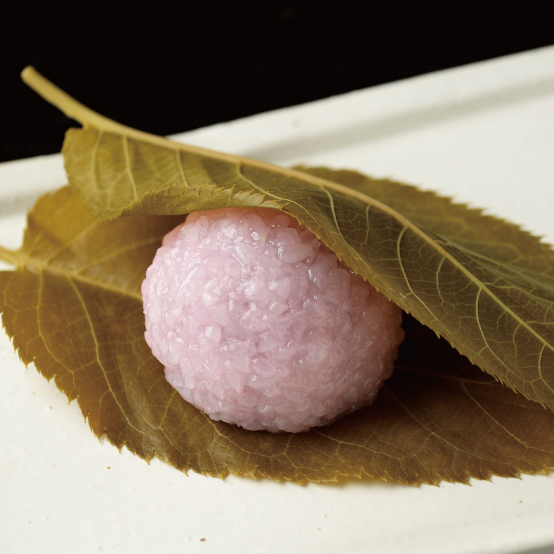 香り高い大島桜の葉を2枚で包む鶴屋八幡自慢の桜餅です。