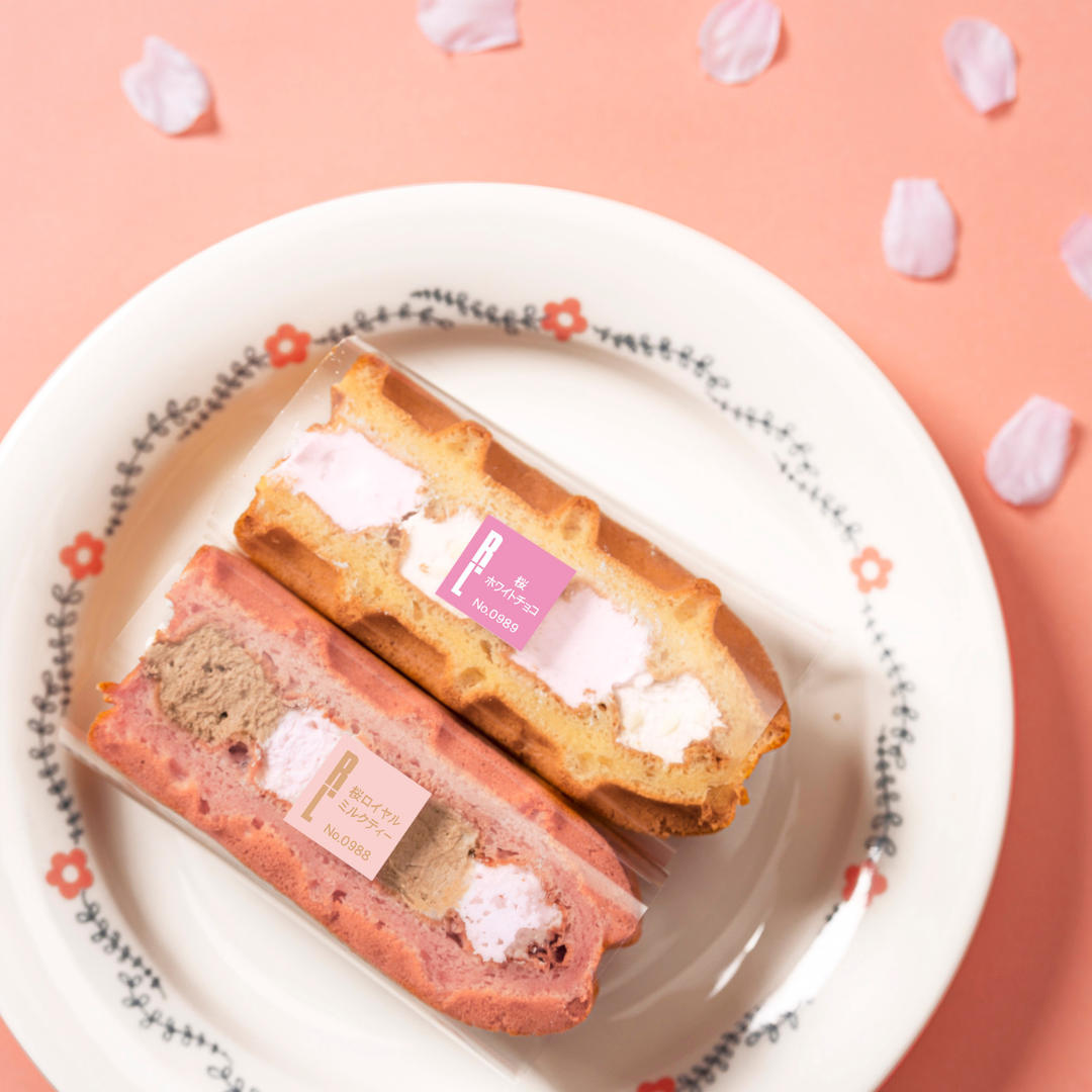 桜クリームにホワイトチョコやミルクティーの風味を合わせた2種の春らしいワッフル。