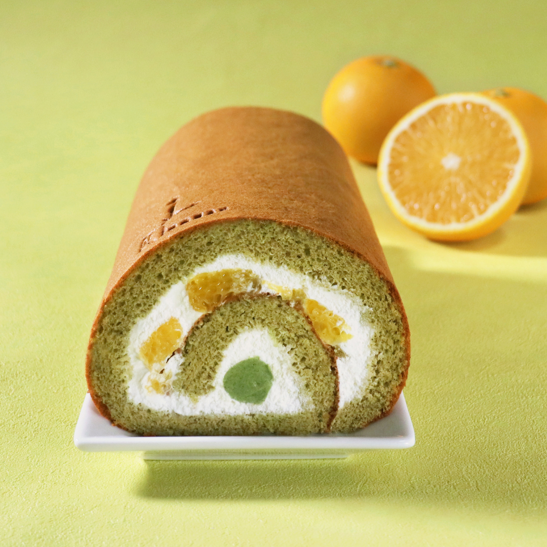 京都和束町産宇治煎茶のガナッシュと和歌山県産八朔を「新潟県胎内産コシヒカリ100%」の米粉と煎茶を使用した生地で巻き上げた爽やかなロールケーキです。