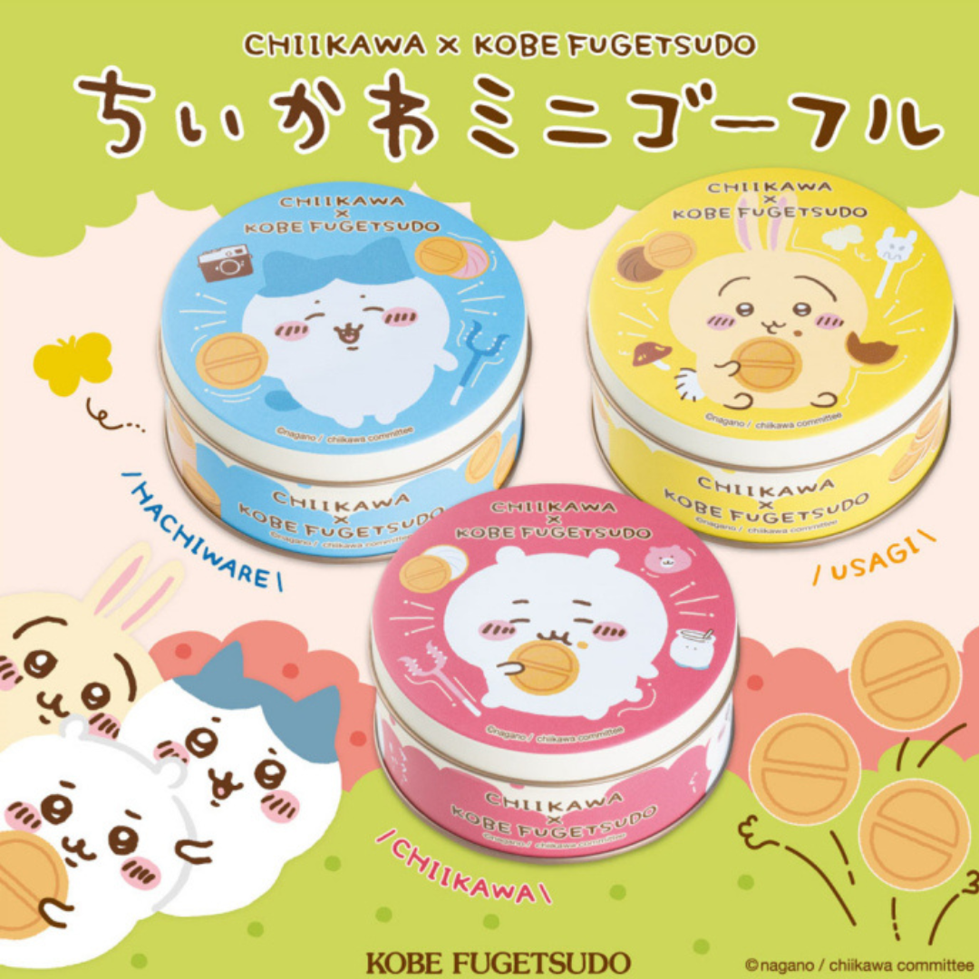 ちいかわ、はちわれ、うさぎのミニ缶に入ったプティーゴーフルです。