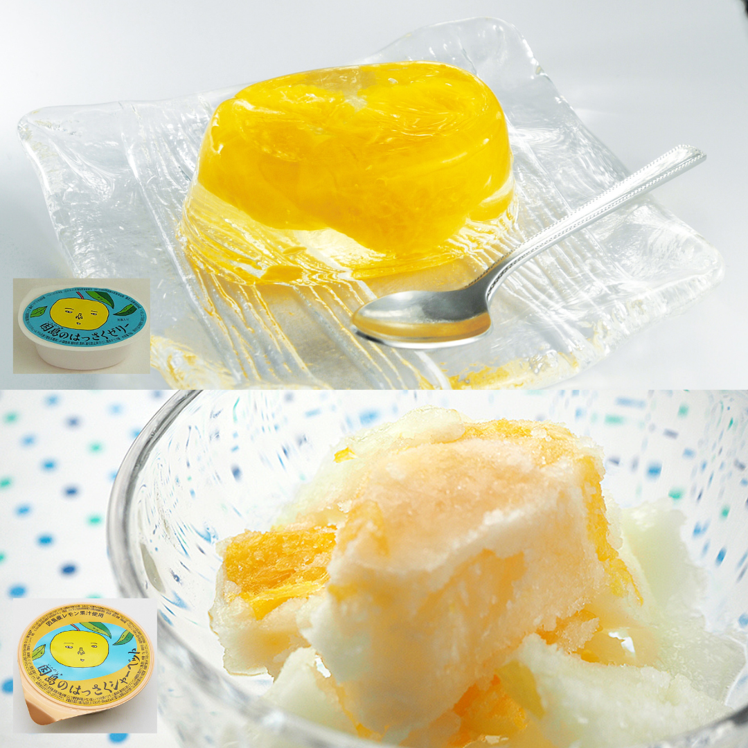 八朔の発祥の地、因島で生まれたゼリーとシャーベット。八朔の果実がたっぷりです。