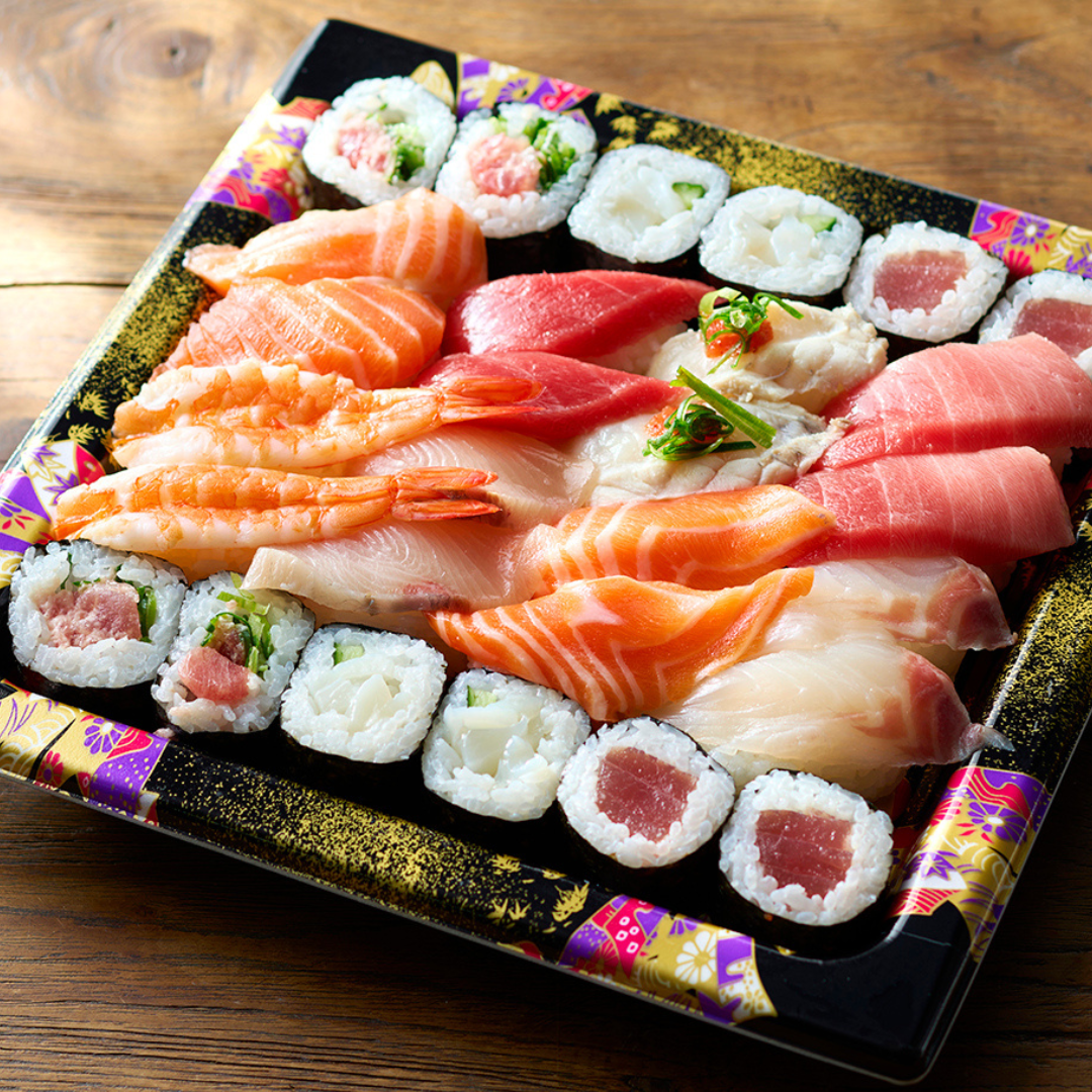 人気の握りと巻き寿司を詰め合わせました。ホームパーティーの食卓を彩る、華やかな一折です。