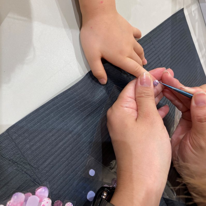 何種類かあるネイルシートからお好きな"ネイルシート”をお子様に選んでいただきアートします(10本)。