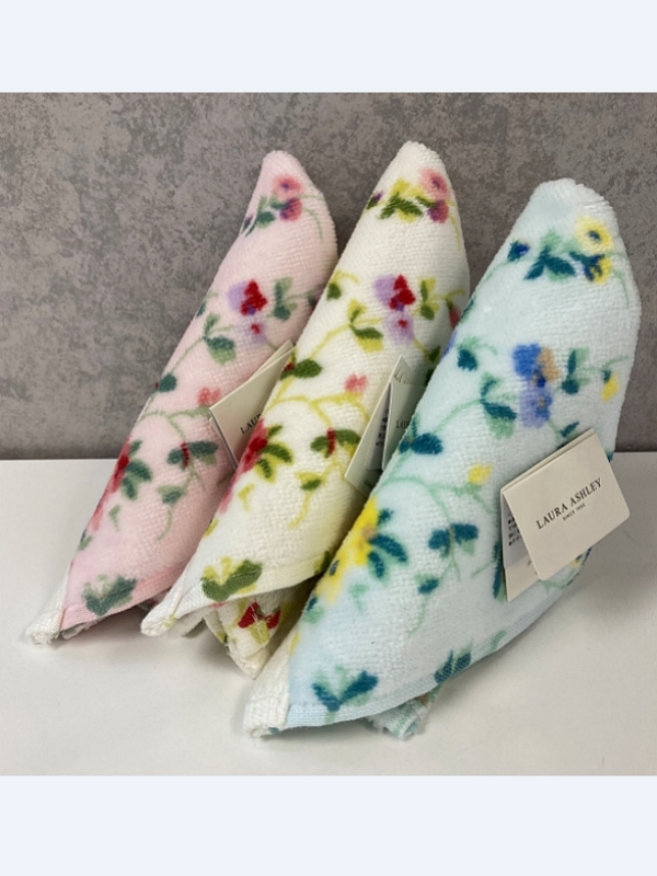 秋のお出掛けにローラアシュレイの新作タオルハンカチを。優しい色合いとお花模様に気分があがるアイテムです。