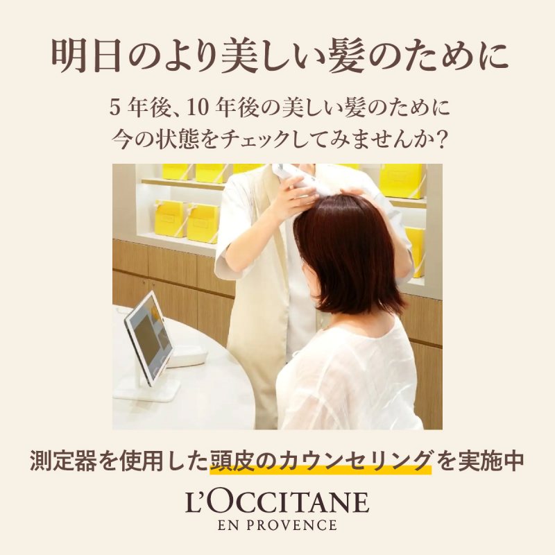 測定器を使用し、お客さまのパーソナルヘアケア測定をいたします。ご自身では調べることができない髪年齢や頭皮の水分・油分量など7項目を一度で測定できます。