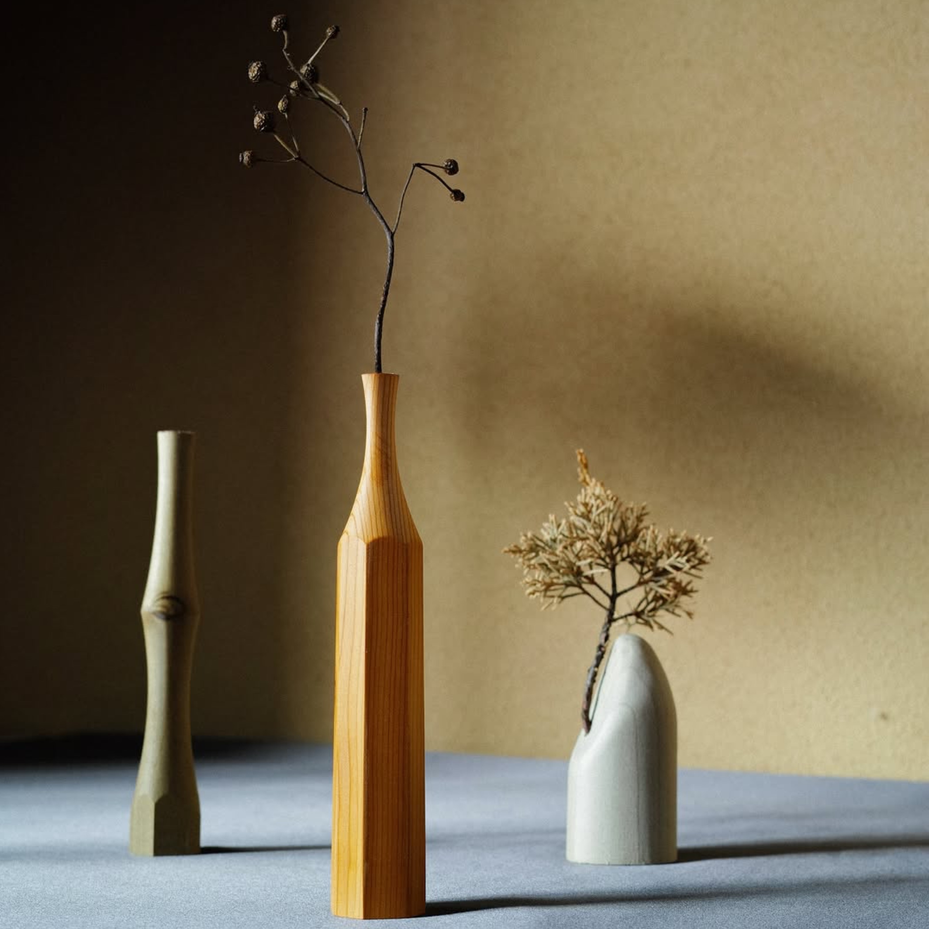 100年に渡り、和包丁の木柄(持ち手)を作る職人が手掛けるオブジェ(一輪挿し)。