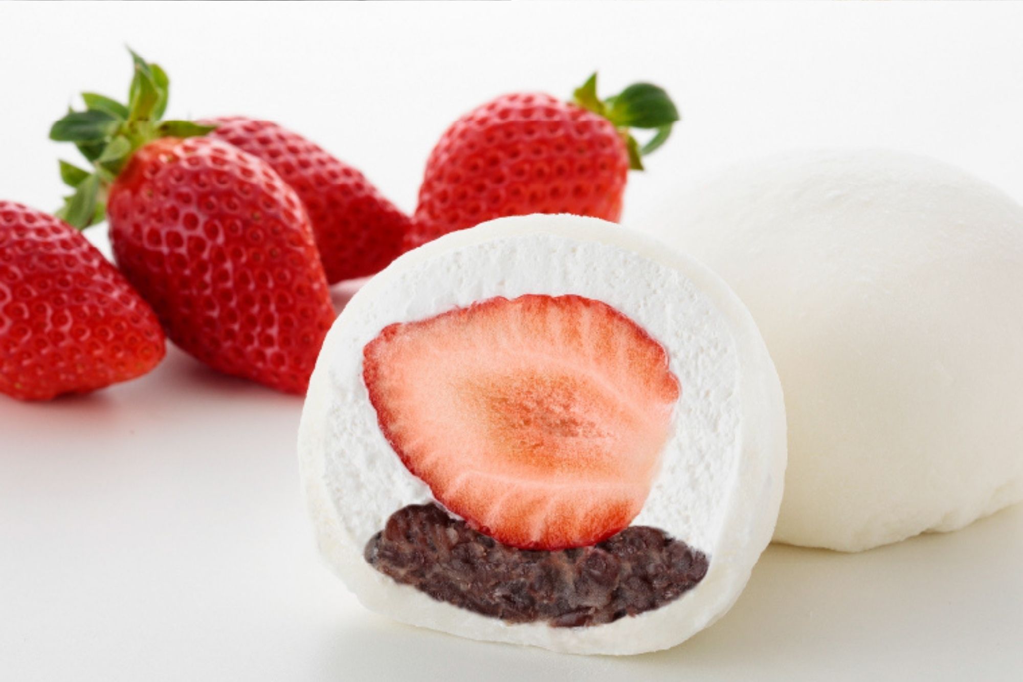 ふわふわなお餅の中に、大粒の苺、